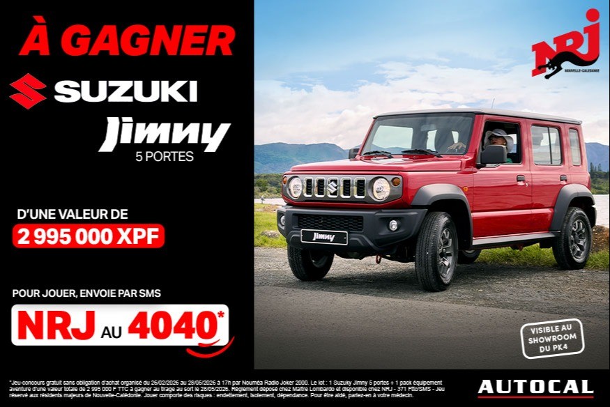 Le grand gagnant repartira avec un Suzuki Jimny 5 portes toutes options, dans une élégante configuration rouge avec toit noir. Compact, robuste et polyvalent, ce 4x4 essence est aussi à l’aise en semaine qu’en escapade le week-end. Que ce soit pour des road trips, des sorties plage ou des excursions en brousse, il s’impose comme un compagnon idéal pour explorer tout le Caillou.